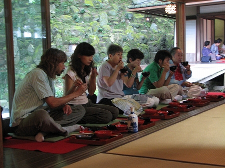 この「月心寺」は吉兆の湯木貞一さんが「天下一」と評した精進料理が食べられる寺。息子を誘うと、一番行ってみたかったところだったそうで、そこから、お嫁ちゃん、娘夫婦も行きたいと言うことになり我が家5人でおでかけ(^O^)/==夫はミミとお留守番の方が良いとか~==