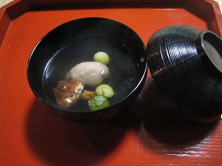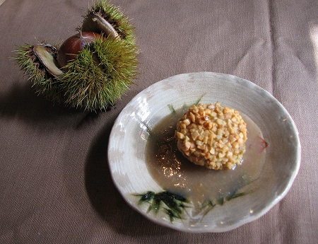 今度はL2クラスの方々のどうしても行きたいとの所望により、月心寺に9/14に続き、10/12に行ってまいりました。・・・・・・秋メニューですから、そうは変わらないのですが、飲み放題の日本酒は冷酒から熱燗になり、炊き合わせが温かい大根の炊き合わせと温かい海老芋の炊き合わせが新たに入っておりました。相変わらずのマツタケの大胆とも言える使いよう(@_@)・・・お吸い物には立派なマツタケの四分の一が入り、水菜のお浸しには焼きマツタケが驚くほどたくさん入っておりましたし、マツタケご飯は一人3杯分は用意されているのです・・・(@_@)・・・写真を撮り忘れたのですが、〆はあの辺りの東海道五十三次の「走井」の「走井餅」は変わらず、薄茶で締めくくりと相成りました。・・・・・・・・・・・・・・「いくら生徒さんの所望と言えど、結構お高いお料理を毎月、そう変わらないメニューに詰めていくか?」のご質問。・・・そう言われればそうなんですが、あの<村瀬明道尼さん>の味付けを近いうちに続けて行くと覚えられるのです。確認できるのです。これは仕事人の欲望で行ったのですが、ご同行願ったみなさんとも和気藹々の楽しいお食事会となりました。