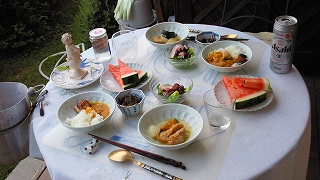 昼は夫が素麺を作ってくれ具材は私がつくっています。