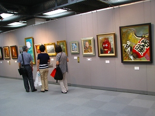 夫の仕事でも絵画でも先輩の先生も出展なさっているので、それも見たくて出かけました。記念会ではあるのですが、プロでなく素人・日曜画家のグループの有名な会なので、さすが力作ばかりで240点もの展示には圧倒されました。プロの賛助出展もあり、賑やかな展覧会でした。(今日8/8までしています)