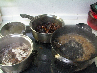 ひじきと実山椒の煮物、蔵豆の煮物、干ししいたけの甘辛煮、出汁作り。