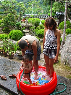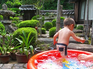 しまいには35年前のように、同じビニールプールに入りました。⇒⇒大きく育っておりました。^_^;