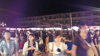 近くまで車で行き、近くの小学校とその入り口商店街に露店をみんな集めていました。