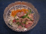 ③鯵のたたきとくらげの酢の物・・・全く~~(>_<)・・お皿を分けるのが面倒で同じ鉢に盛りました^_^;鯵の切り方の粗いこと~~^_^;(言い訳⇒早く食べたくって~)
