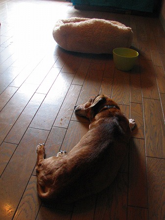 久しぶりなので、隅から隅まで、確認行脚^_^;・・・今は暑いので~~^_^;・・・ミミ君。ベッドをよそ目に冷たくて気持ちの良い床でオネム~~(*^_^*)スヤスヤ・・。
