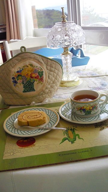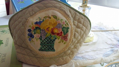 ・・それに感激したのが、ビレロイ・ボッホのバスケットの模様が刺繍されたティーコージ!!(@_@)・・これにはびっくりしました。お友達が刺繍をしてくださったそうです。(そりゃみたことがないはずですね)